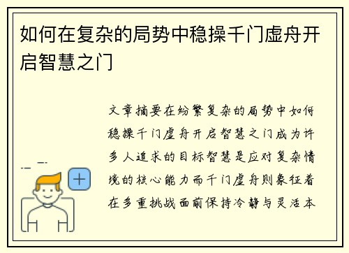 如何在复杂的局势中稳操千门虚舟开启智慧之门